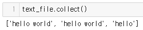 - collect(): RDD의 모든 요소를 드라이버 프로그램으로 가져온다.